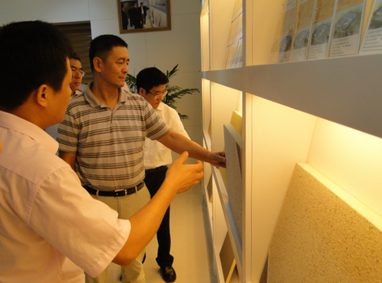8月29日上午,在省科技廳國際合作處趙揚威處長及無錫市科技局、錫山區(qū)科技局等領(lǐng)導(dǎo)陪同下,科技部國際合作司靳曉明司長及司屬計劃處長一行冒著小雨參觀考察了江蘇捷陽科技股份有限公司,企業(yè)承擔(dān)的國際科技合作情況進(jìn)行調(diào)研,參觀了企業(yè)樣品展覽室和生產(chǎn)車間,聽取了企業(yè)和美國麻省理工學(xué)院建筑系合作的建筑節(jié)能材料研發(fā)項目進(jìn)展情況匯報。在聽取企業(yè)承擔(dān)的國際合作項目匯報后,靳曉明司長講解了國內(nèi)外建筑節(jié)能發(fā)展情況,及國外對建筑節(jié)能政策支持力度,同時肯定了捷陽公司產(chǎn)品及未來發(fā)展空間。